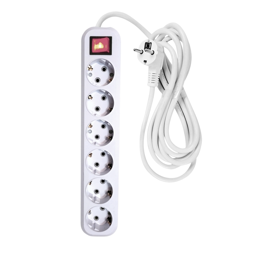 Сетевой электрический фильтр 3 метра от "MAXIMUM QUALITY TOOLS" имеет 6 розеток на подключение к сети переменного тока. Удлинитель на 6 розеток предназначен для бытовых приборов. Белый корпус из негорючего АБС-пластика подходит для использования только внутри помещений.