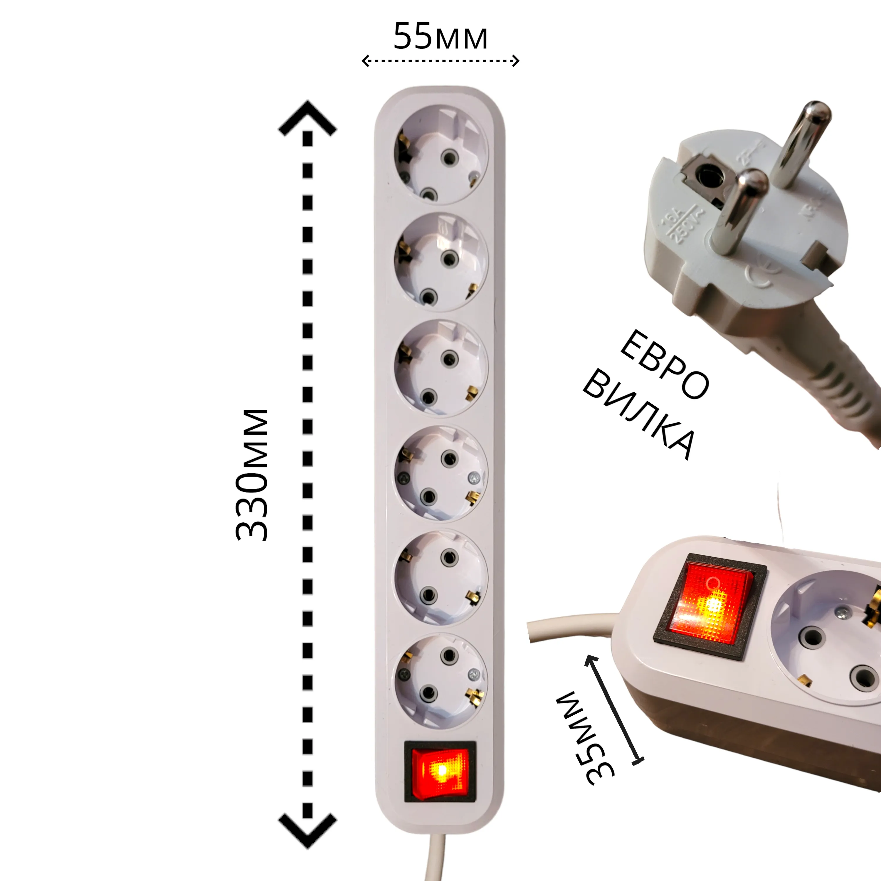 Сечение кабеля 0,75 мм. В конструкции предусмотрена удобная кнопка включения со световым индикатором.