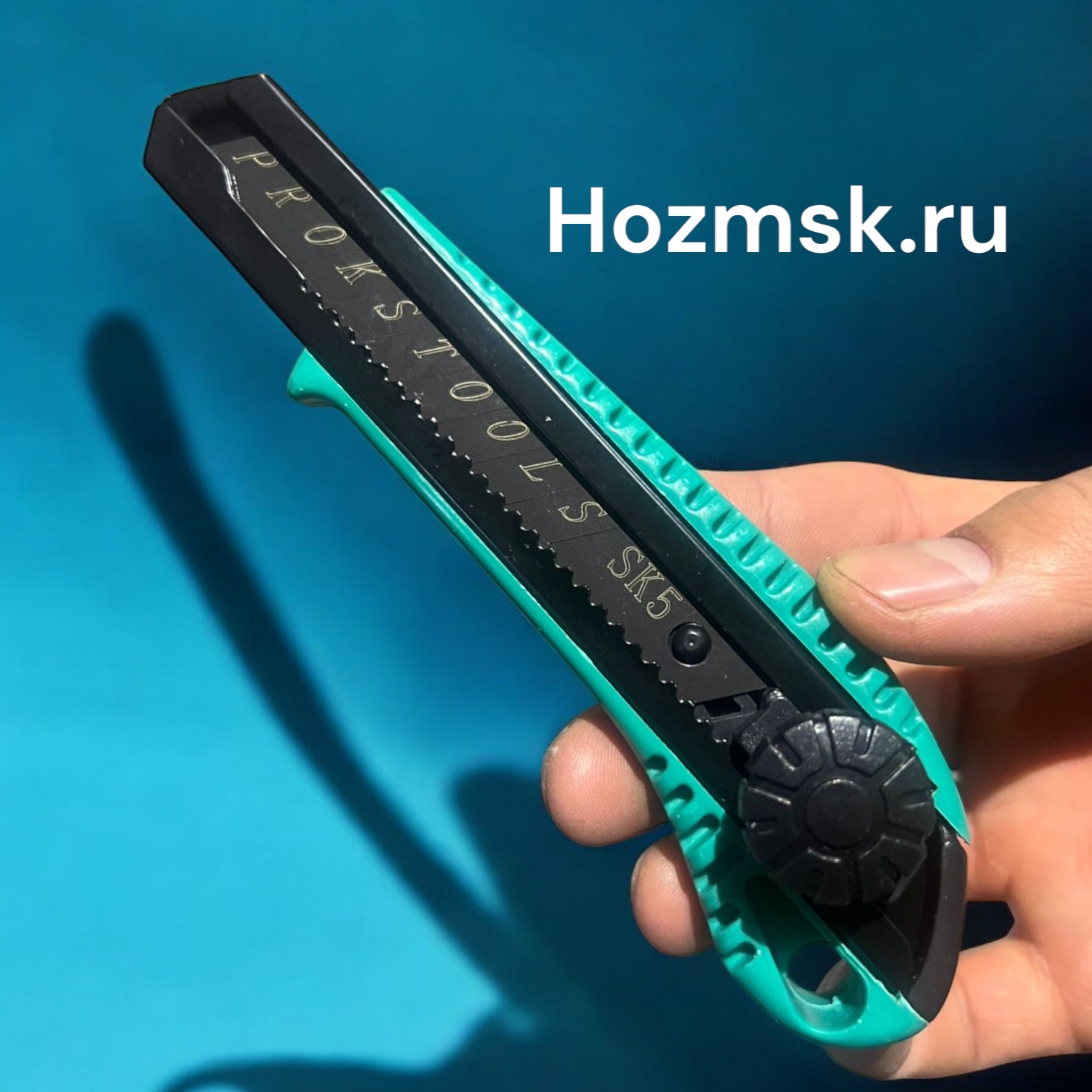 Пластиковый корпус с металлическими направляющими надежно удерживает острое сегментированное лезвие из стали SK 5.