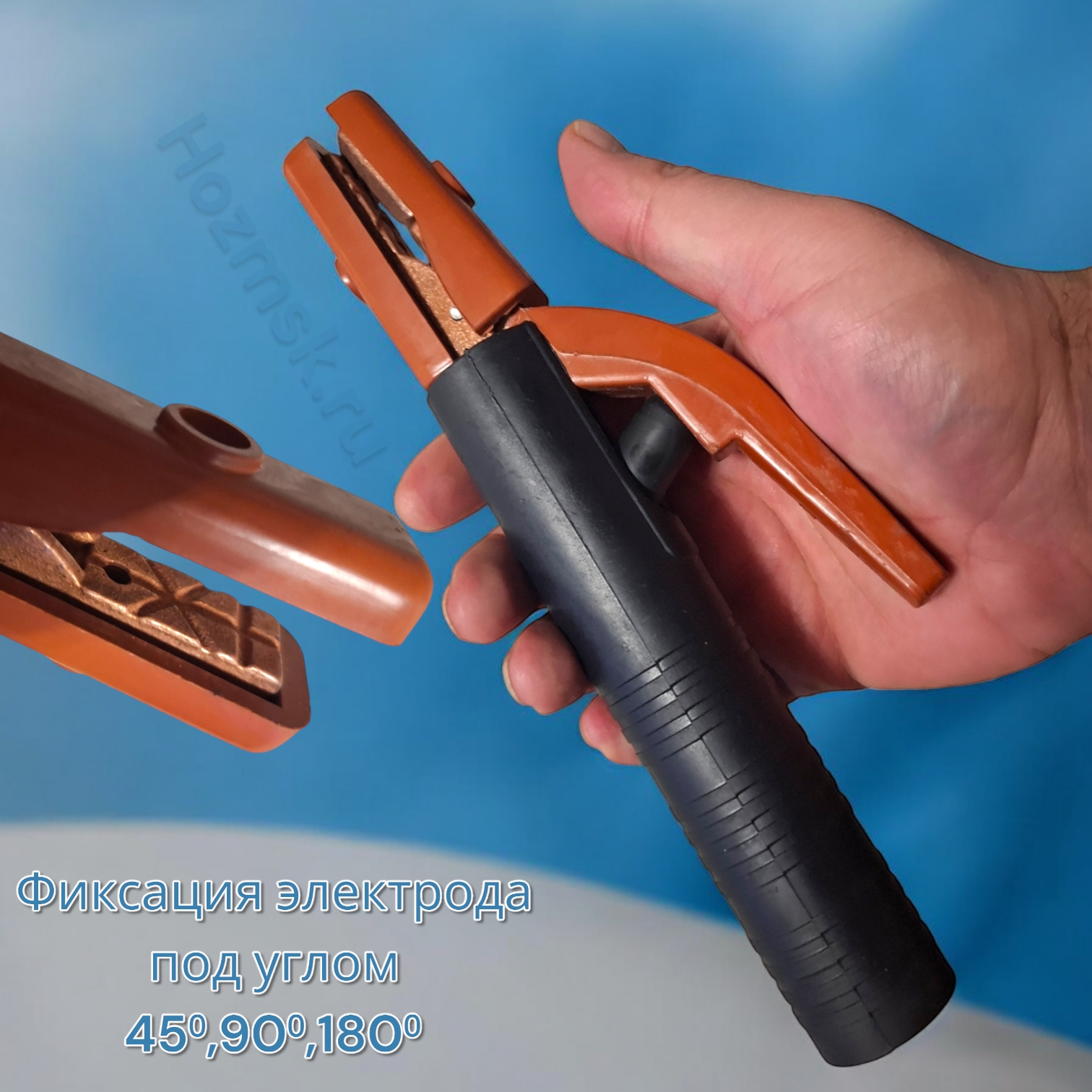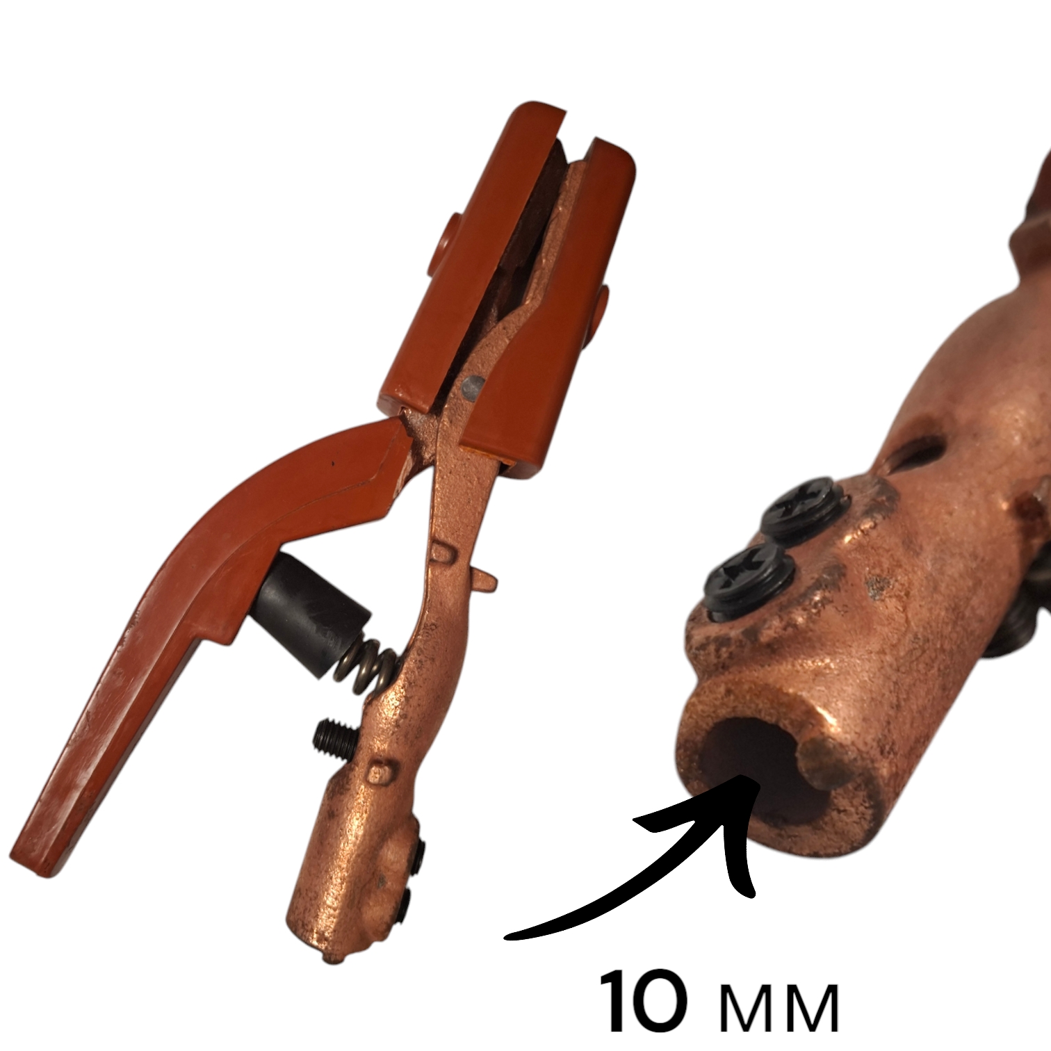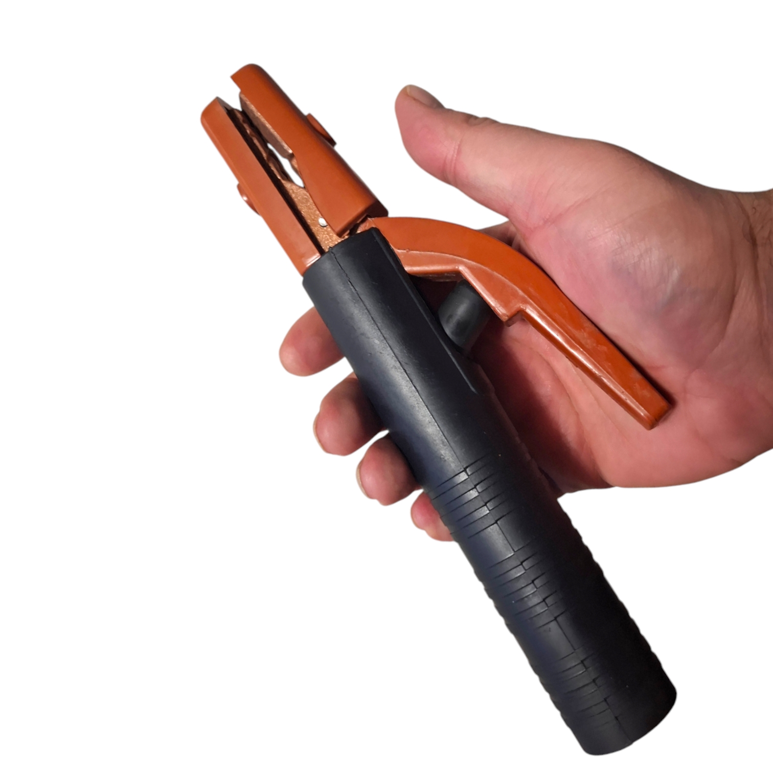 Электрододержатель пружинный соответствует всем стандартам и техническим допускам по электросварочному оборудованию. Длина держака всего 240 мм, ширина зажимной части 20 мм.