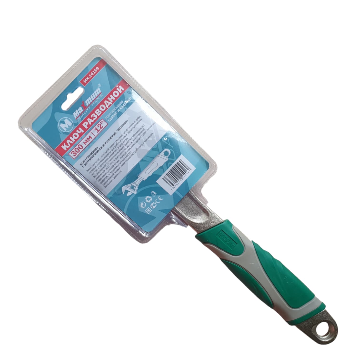 Ключ разводной 200 мм с двухкомпонентной рукояткой,тонкие губки,фосфатирован,МХ5577-8,MAXIMUМ (2857)