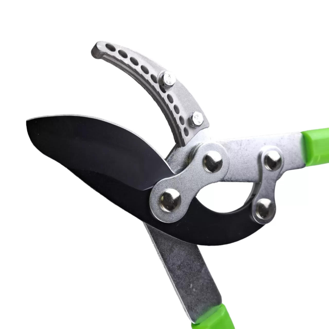 Кусторез с наковальней и телескопическими прорезиненными рукоятками используется для обрезки толстых веток толщиной до 6 см. Рычажный надежный механизм создан для быстрой и комфортной работы.Тефлоновое защитное покрытие лезвия из углеродистлй стали SK5 упрощает очистку инструмента. Рычажный механизм и лёгкая и конструкция помогает прилагать меньше физических усилий при обрезке толстых сучков. Рабочая часть сучкореза из стали SK5 покрыта тефлоном и имеет длину 90 мм.