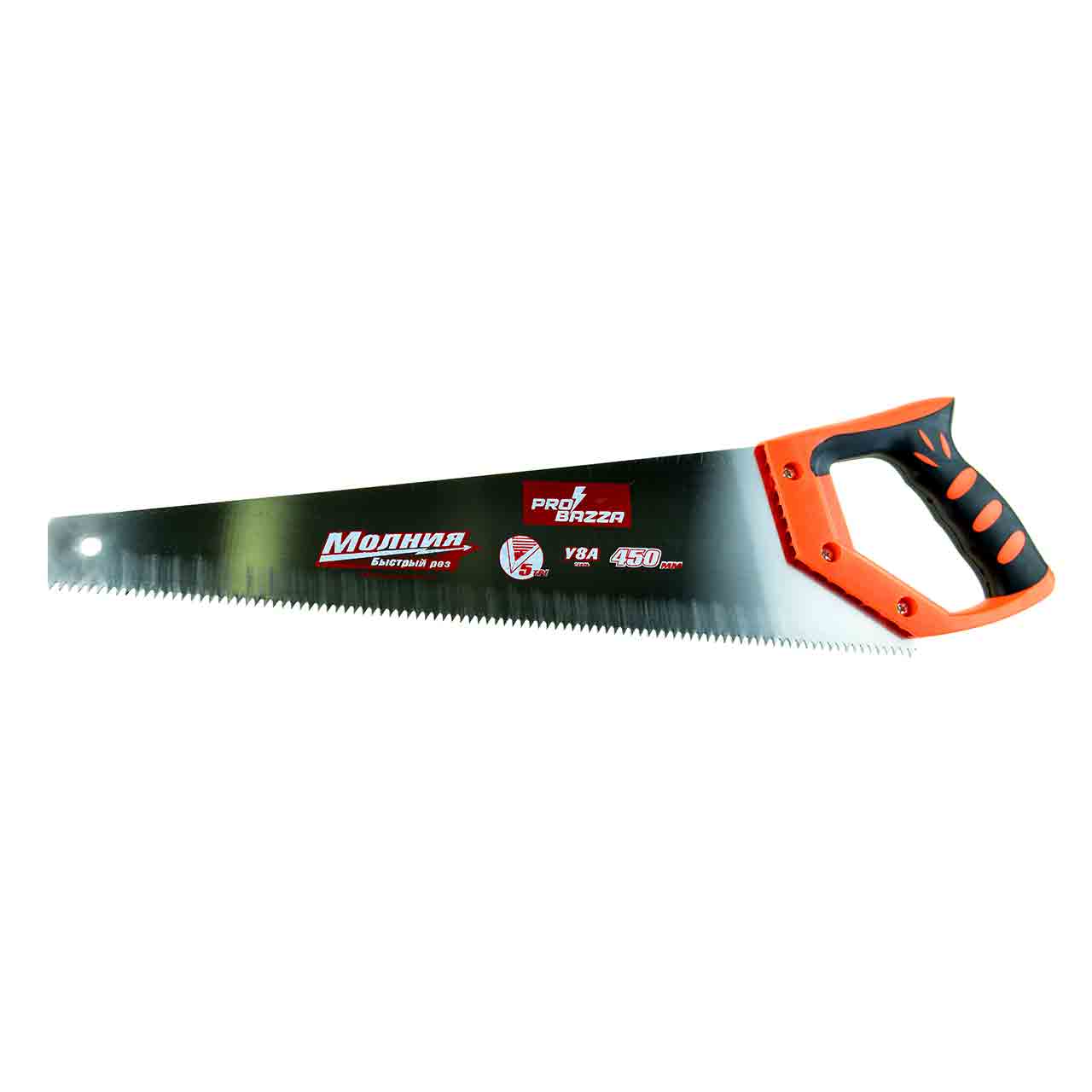 Пила ручная 450 мм "Probazza" универсальна в своем применении, так как стальное полированное полотно предназначено для работ по дереву, ламинату, пластику, ДСП и даже мягким металлам. Небольшой вес ножовки позволяет работать в труднодоступных местах. Увеличенная толщина полотна и закаленный зуб 5 TPI обеспечивает быстрый рез. Рукоятка пилы выполнена из дерева и имеет резиновую окантовку.
