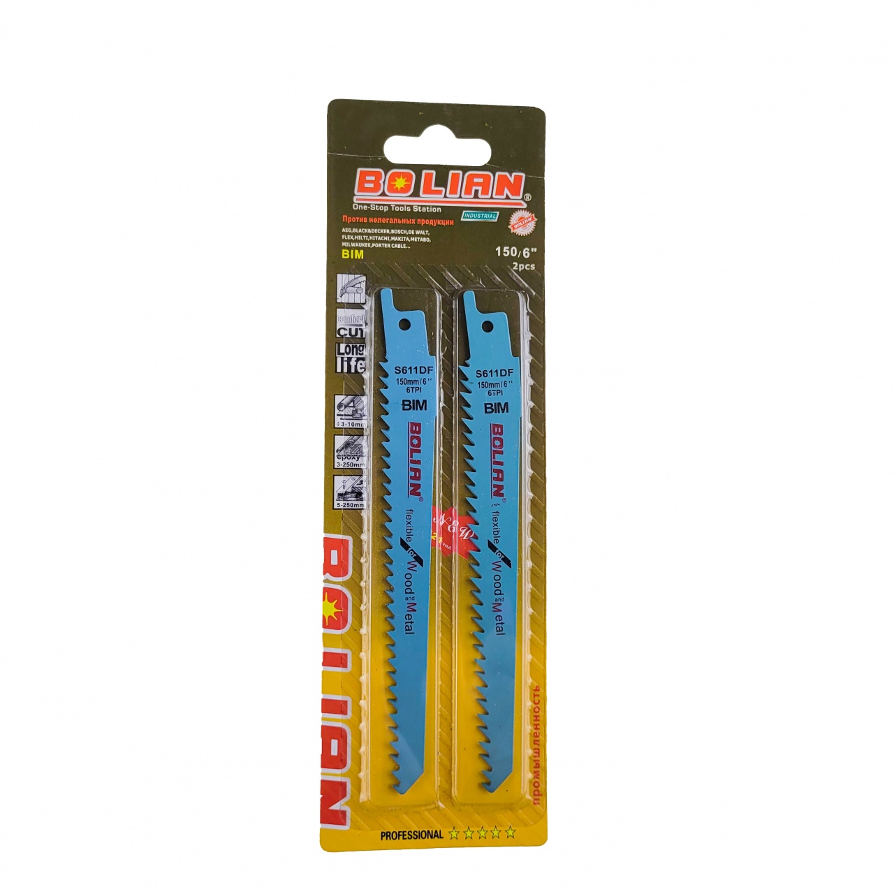 Сабельное пильное полотно S 611 DF Flexible for Wood and Metal позволяет выполнять быстрые погружные пропилы в дереве и металле. Крупный шаг зубьев (4,3 мм) и разведенные зубья позволяют достичь быстрого результата при работе с окнами распространенных размеров. BIM полотно обеспечивает легкую работу в труднодоступных зонах, а заостренный конец предназначен для погружного пиления. Биметаллическая основа сочетает в себе полотно HCS(высокоуглеродистая сталь) и полоску зубьев HSS (быстрорежущая сталь), что делает это полотно оптимальным для демонтажа окон. Стандартная длина полотна 150 мм обеспечивает глубину реза до 100 мм. Данная оснастка для сабельных пил с универсальной системой хвостовика 1/2 дюйма.