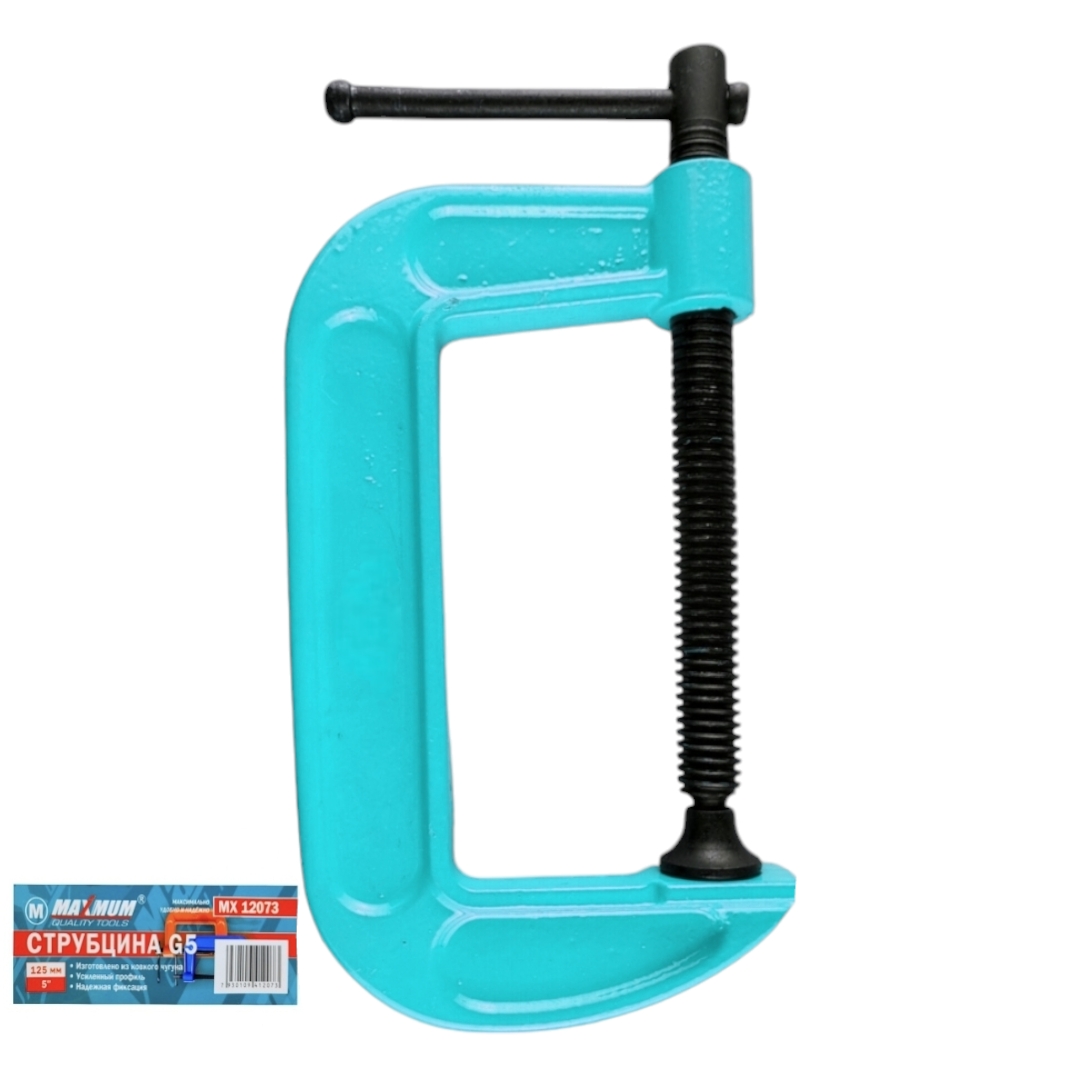 Струбцина G-образная, 125 мм, Maximum изготовлена из инструментальной стали и кованого чугуна со специальным антикоррозийным покрытием.