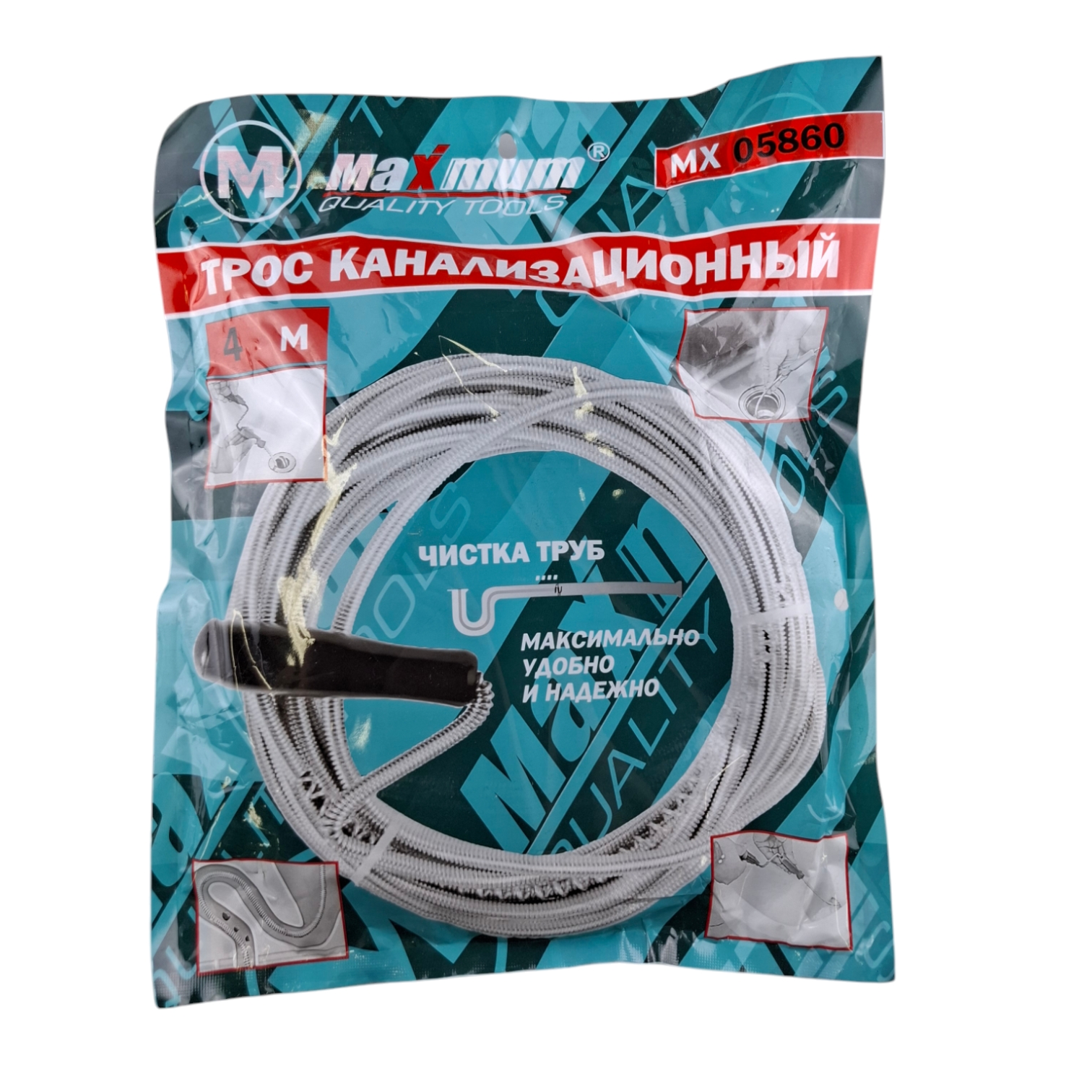 Трос для прочистки канализационных труб 4 метра предназначен для экстренной или профилактической очистки от засора: унитазов, гидрозатворов, бытовых раковин, рукомойников, трапов в душе, решеток в ванной. Прочистка не требует разборки сифона.