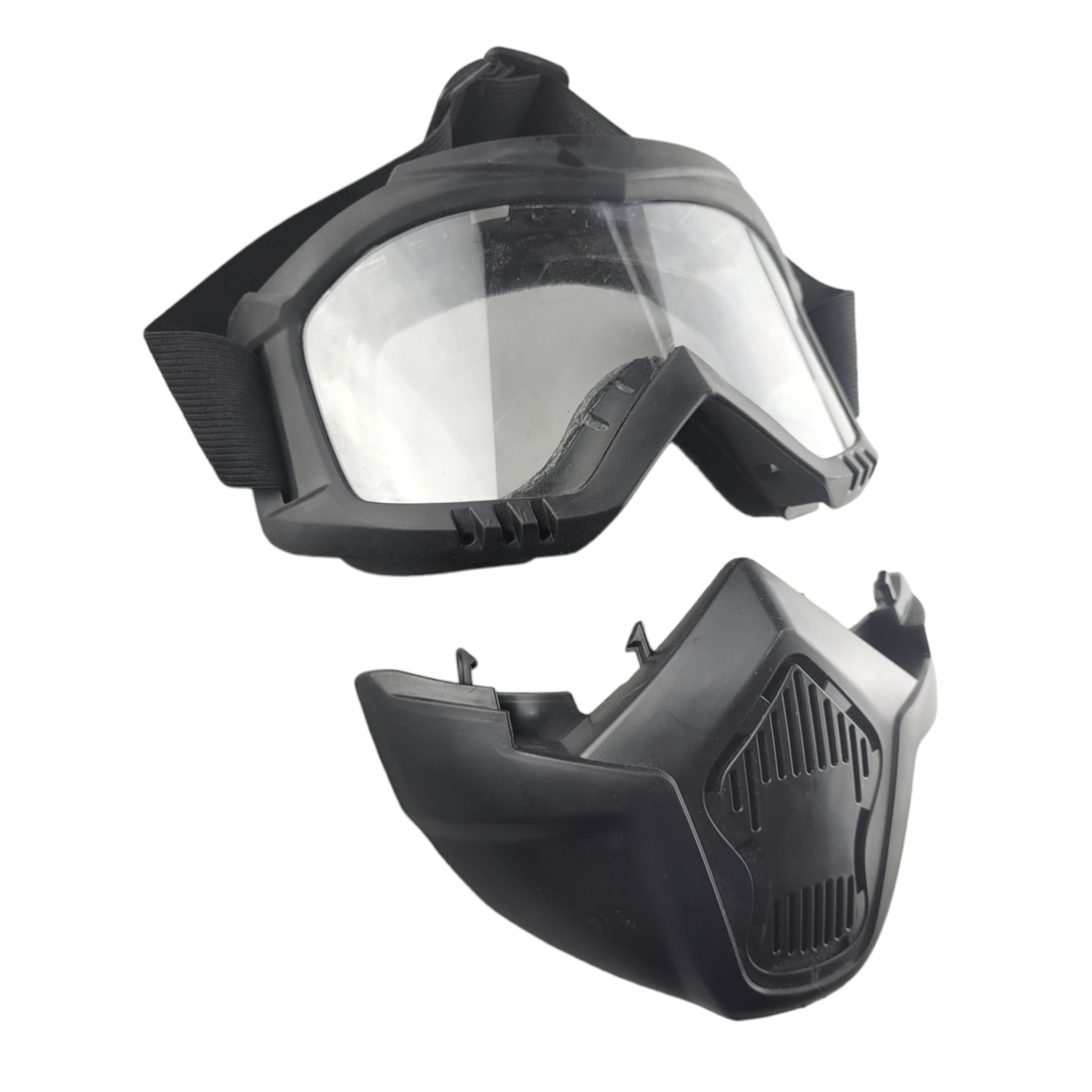 Разборная конструкция позволяет использовать маску по-отдельности. Очки-экран не искажают обзор. Благодаря мягкому ремню очки-маска легко и быстро регулируются и фиксируются на затылке. Маска выглядит стильно и качественно. Внутри маски создан специальный фильтр очистки воздуха. Линза из небьющегося поликарбоната делает очки прочными и даже позволяет мыть их под водой. Благодаря мягким внутренним накладкам защита бережно и комфортно прилегает к лицу.